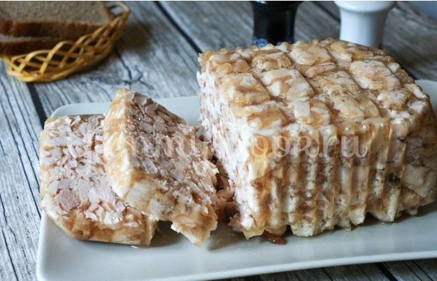 Куриный сальтисон хорошая замена колбасе, Можно подать на стол с горчицей, как холодец, а можно, как бутерброд, положив кусочек сальтисона на серый хлебушек